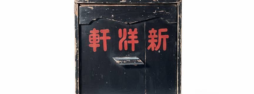 昭和のデリバリーボックスに刻まれた、料理屋の物語 黒塗りの木箱に浮かぶ「軒洋新」の朱文字 昭和初期、新井の街を走る出前箱(岡持ち)は、堅牢な木製でした。黒く塗られたその表面には、鮮やかな朱色で、今とは逆向きの文字で「軒洋 …