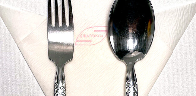 一枚一枚手折りした洋食屋の仕事風景 印刷した紙を仕入れて折る、手仕事 真っ白な紙の中央に「SHINYOKEN」のロゴが印刷された紙ナプキンがあります。現在ではあらかじめ六ツ折などに折りたたまれ、お店のロゴが印刷された業務 …