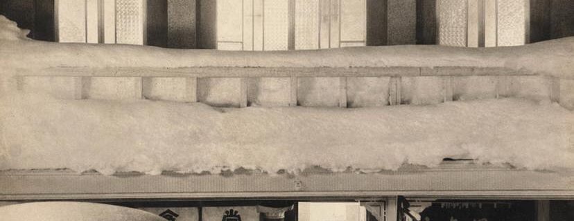 マンパワーと雁木で乗り切った冬の記録 埋没する街並み 昭和の初め頃、冬が深まると商店街の店舗の一階は完全に雪の下に沈みます。消雪パイプや流雪溝といった設備はまだなく、降り積もる雪はそのまま街の形を変えていきました。新井の …